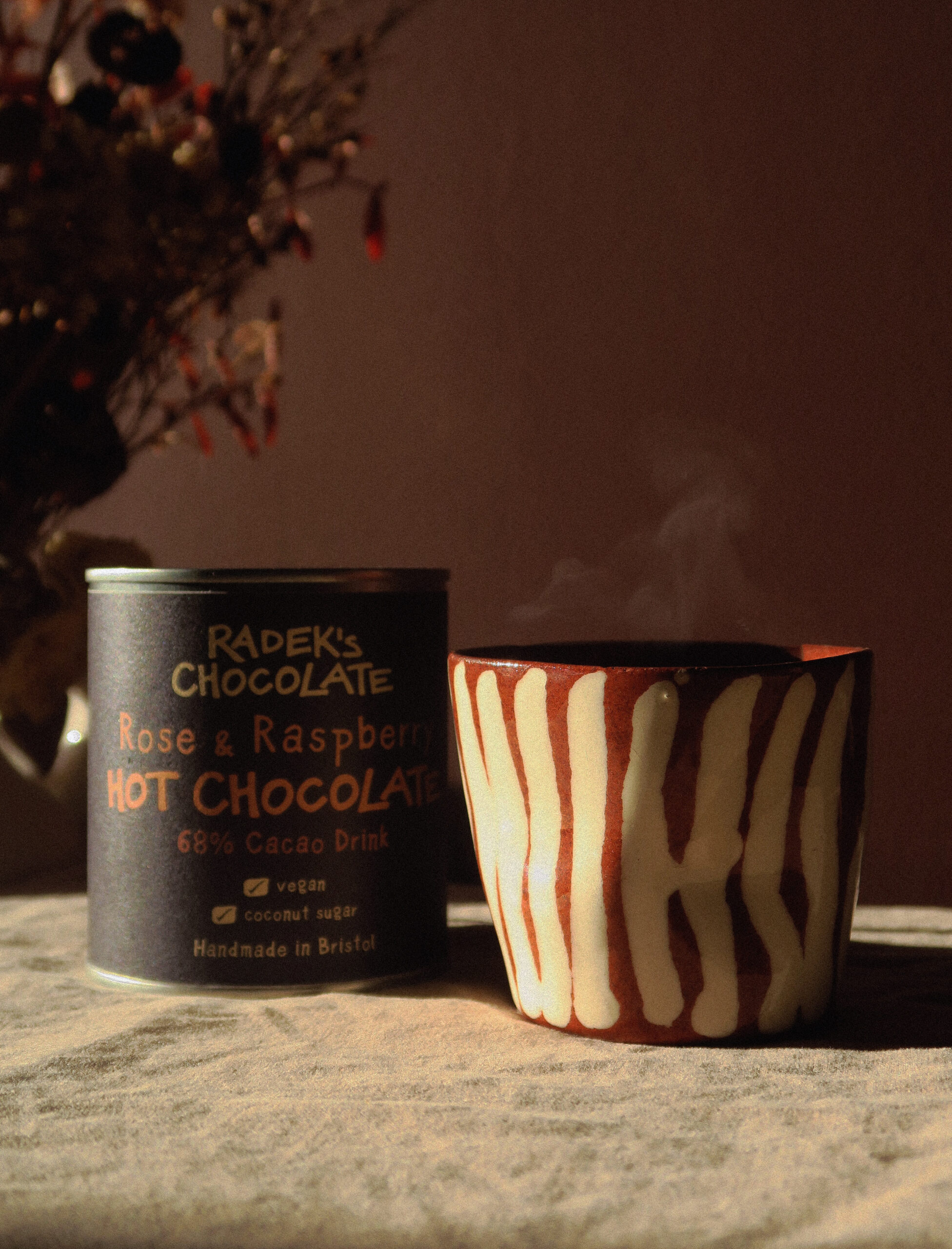 This luxurious hot chocolate is packed full of unique flavour! Combining our signature chocolate with Rose Otto Oil, raspberry powder, and raspberry leaf not only creates a hot chocolate that’s creamy and indulgent, but can be beneficial to your health too.